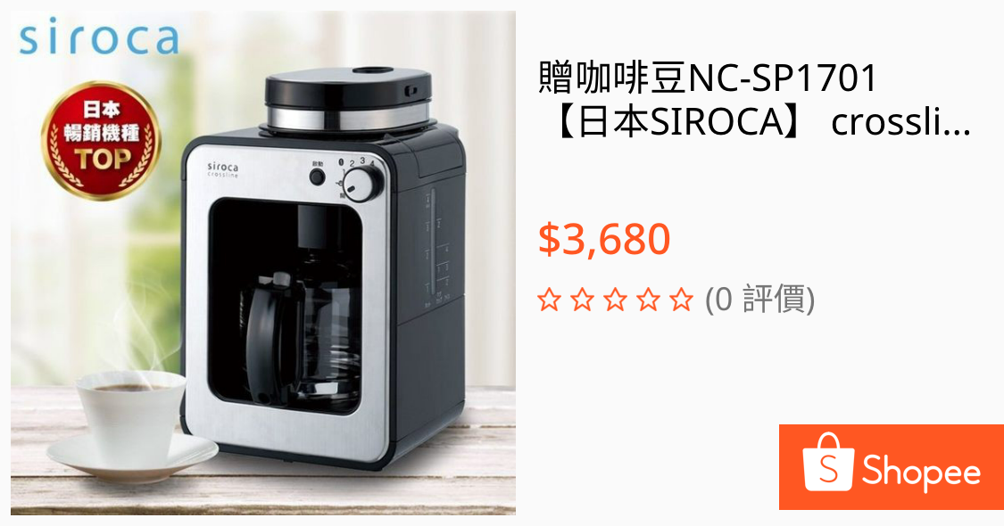 贈咖啡豆NC-SP1701 【日本SIROCA】 crossline 自動研磨悶蒸咖啡機 SC-A1210S 免運費